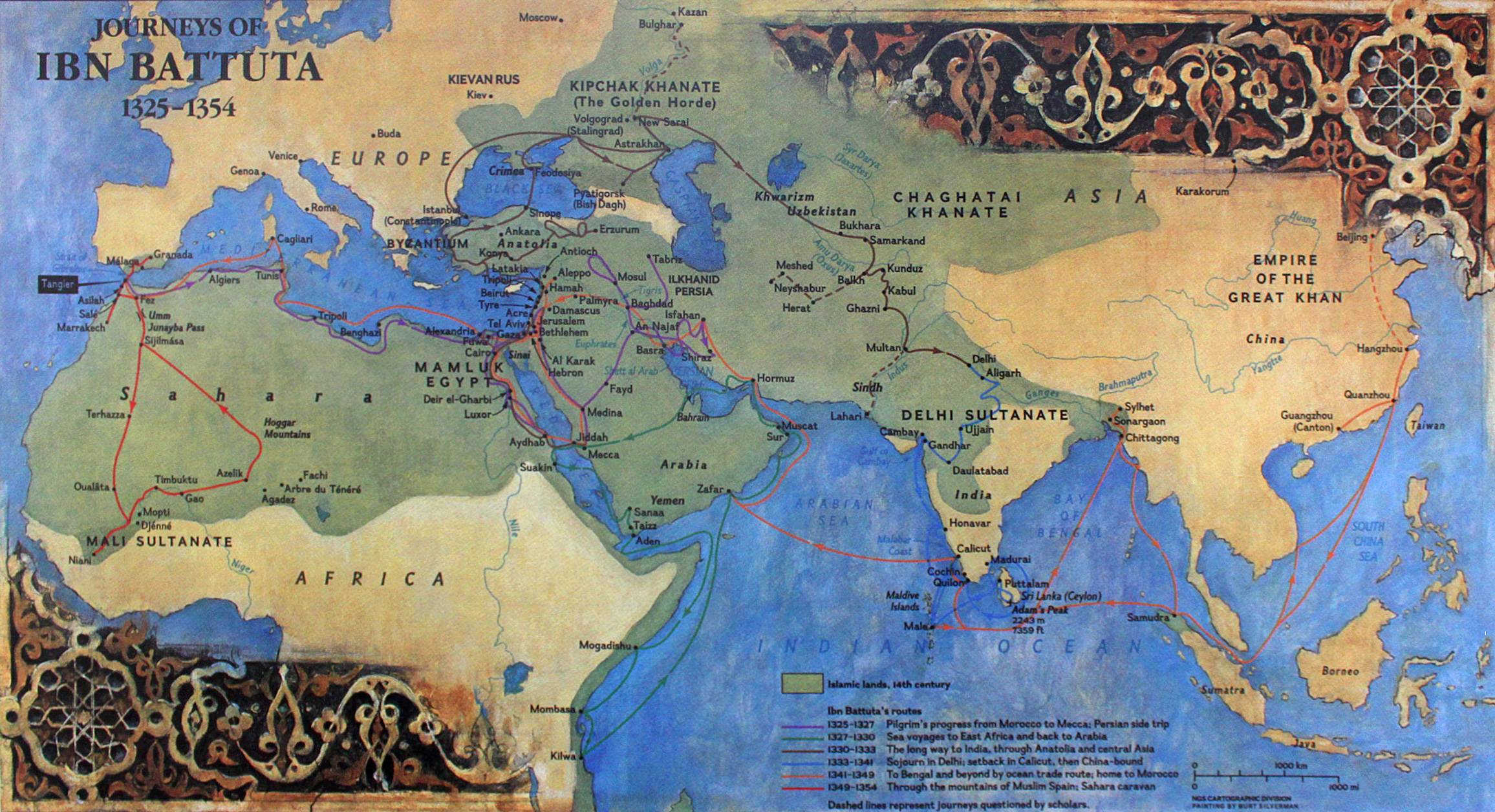Sarjana Ross E Dunn menggambarkan titik waktu karier Ibnu Battuta dalam bukunya, The Adventures of Ibnu Battuta yang terbit tahun 1986.