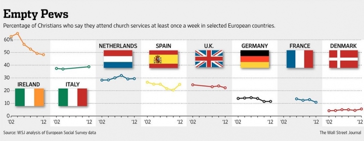 Berdasarkan data pusat studi Kristen global di Gordon-Conwell Theological Seminary Boston, merosotnya pengaruh Kristen tampak nyata di Prancis, Swedia dan Belanda dimana pengunjung gereja kurang dari 10 persen di pelbagai tempat. Kenapa hal ini terjadi?