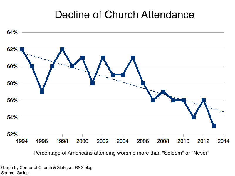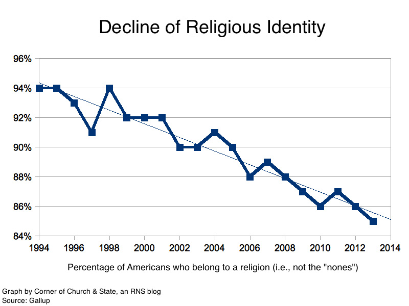 Proporsi penduduk AS yang menganggap agama “dapat menjawab semua problematika kehidupan” kini berada di titik terendah dalam sejarah, kurang dari 48 persen. Bandingkan dengan saat Bush dan Clinton menjadi presiden. Angka tersebut tidak pernah melorot di bawah 58 persen.