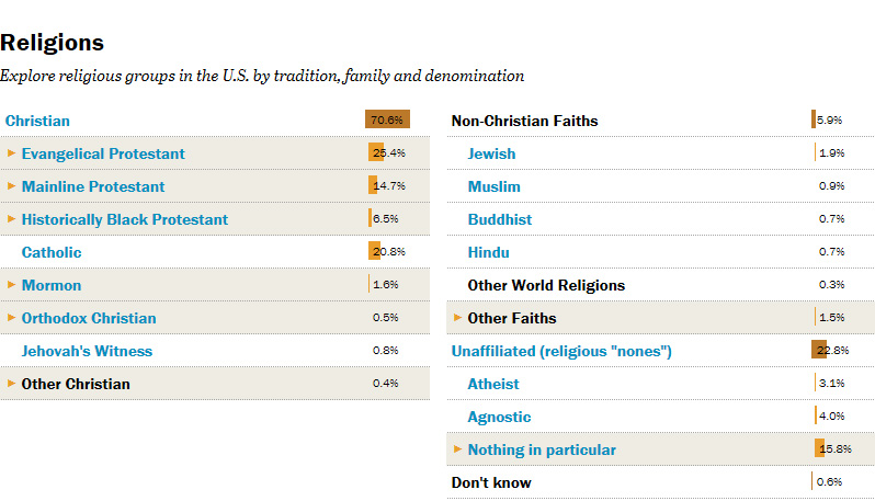 Sebuah jajak pendapat terpisah yang digelar Pew Forum, seolah mengulang temuan ARIS. Persentase orang yang mengaku tidak terikat agama dan keyakinan tertentu naik dua kali lipat dalam beberapa tahun terakhir, menjadi 16 persen.