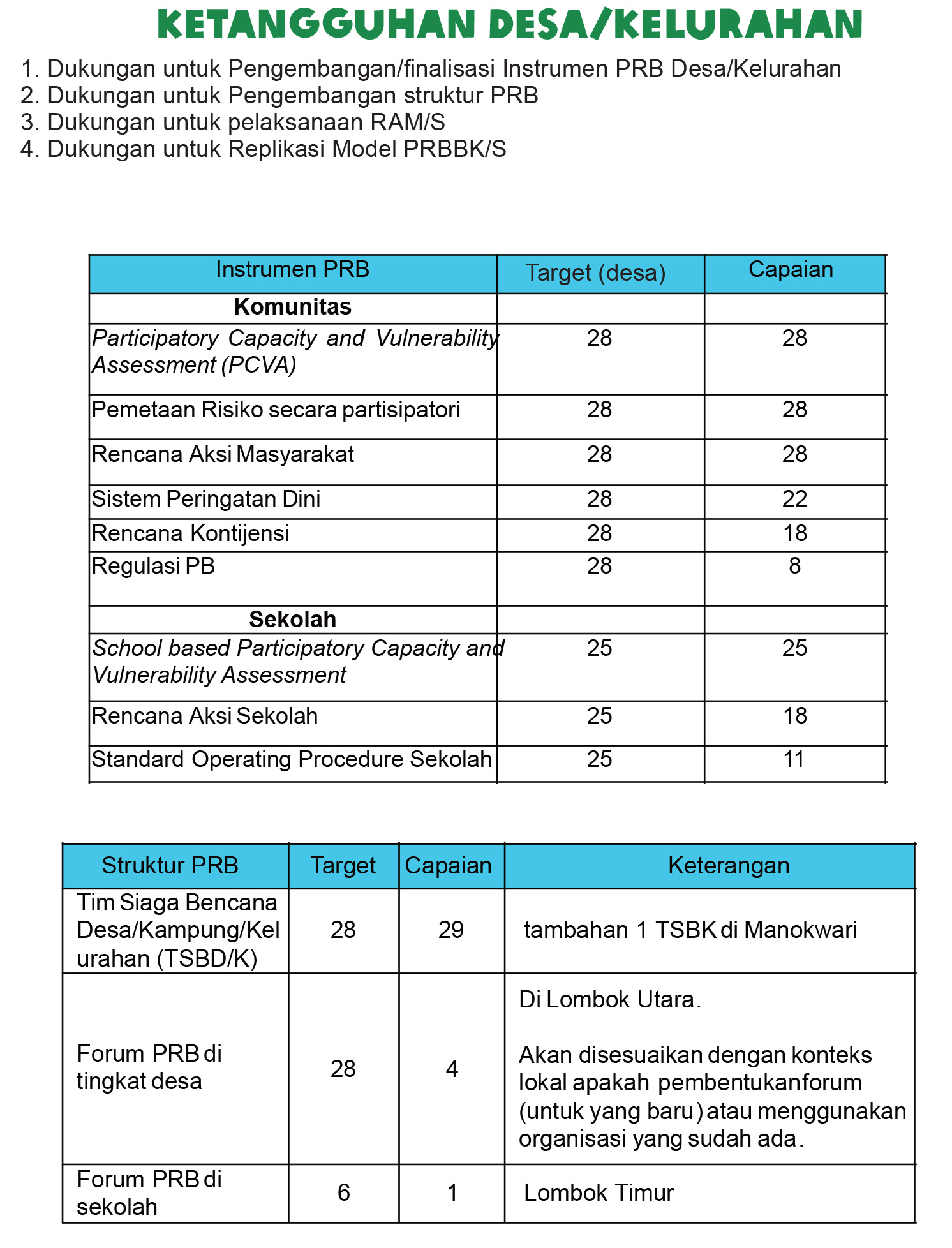 “Kami juga telah merampungkan dokumen rencana aksi masyarakat dalam PRB, baik dalam bentuk fisik maupun materi,” ujarnya.